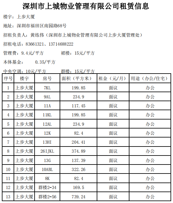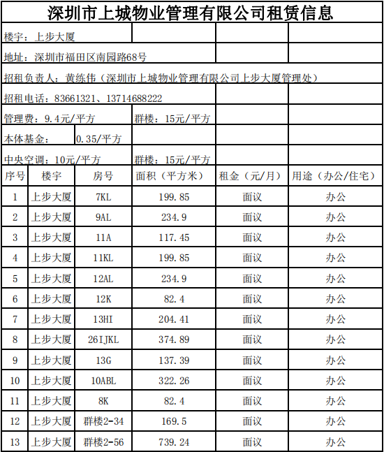 深圳市上城物業(yè)管理有限公司租賃信息